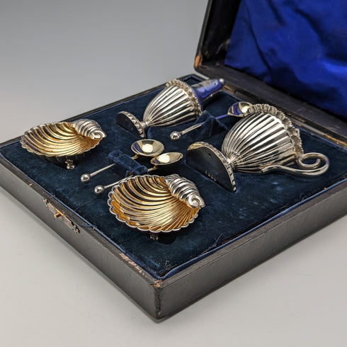 約 1910 年英國古董鍍銀調味容器套裝盒裝