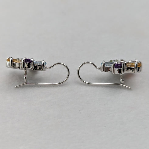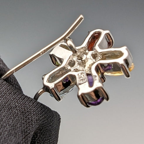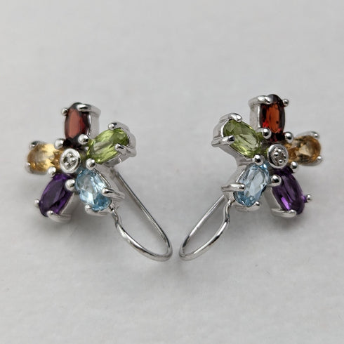 英國復古珠寶鑽石與多石花朵純銀耳環