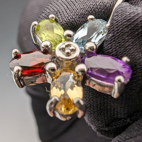 寶石:石榴石/黃玉/黃水晶/橄欖石/紫水晶鑽石(中心:約0.01克拉)