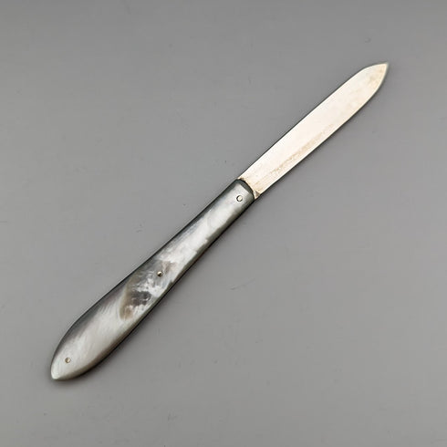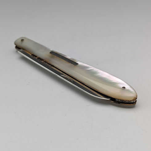 這是一種折疊式,配有珍珠母手柄和純銀刀片。