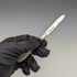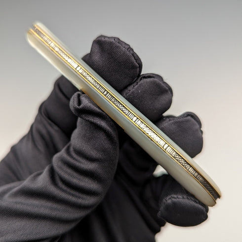 白色珍珠手柄沒有雕刻,但呈圓形,方便抓握。