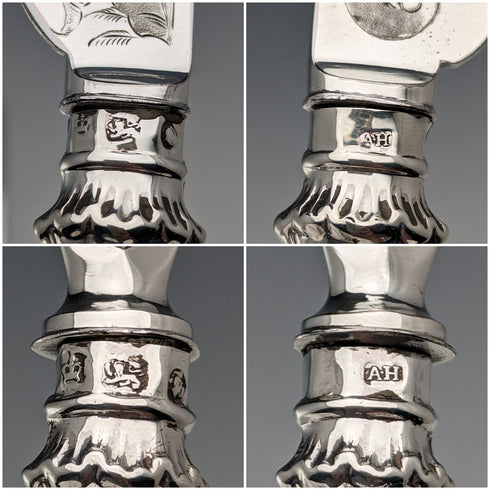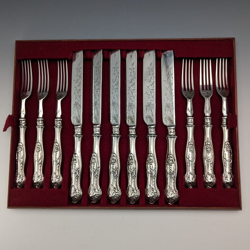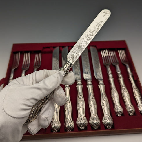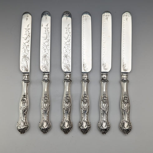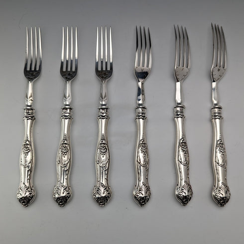 約 1830 年英國古董純銀手柄 6 雙水果餐具 包括 Aaron Hadfield 托盤