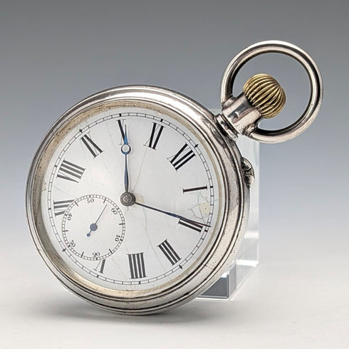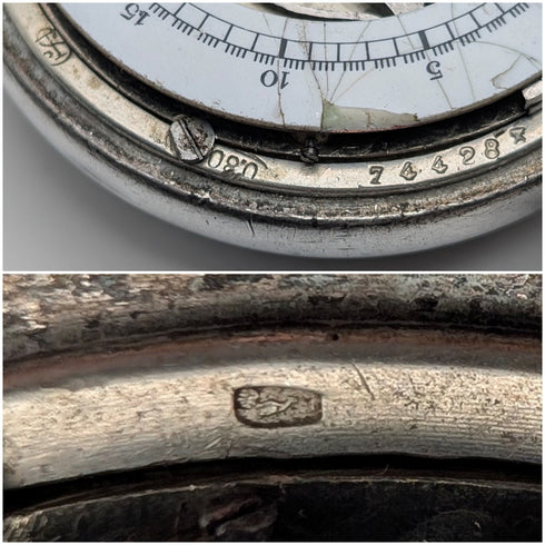 瑞士古董無簽名雙面計時懷錶 800 銀色錶殼操作良好
