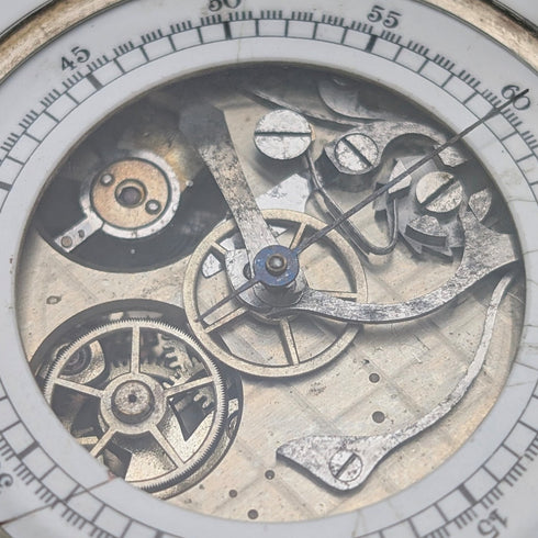 這是一款非常罕見的懷錶,兩側都有錶盤,一側是普通手錶,另一側是秒錶(計時碼錶)。