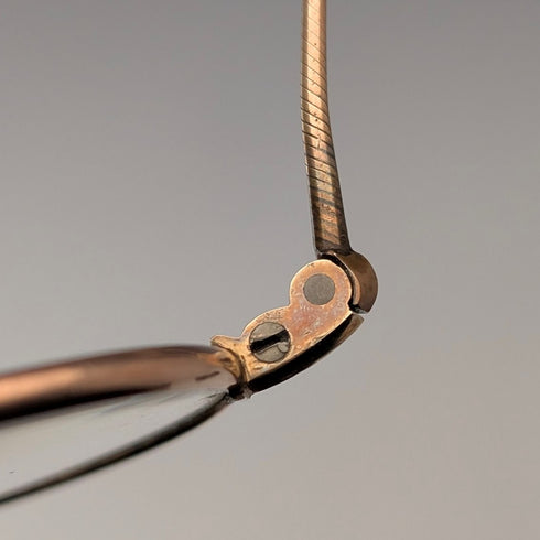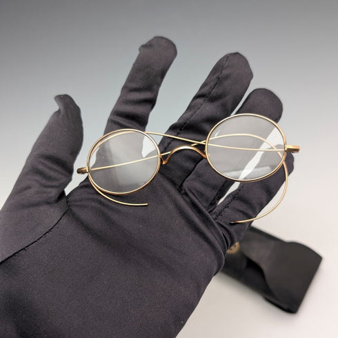 這款小眼鏡配有鍍金橢圓形鏡片,並配有原廠皮盒。