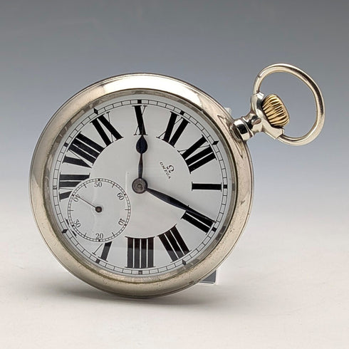古董歐米茄懷錶,約 1910 年,直徑 55 毫米,鐵路錶,合金錶殼,運作良好