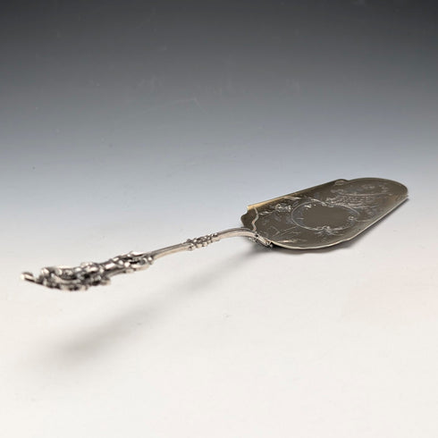 這是一把漂亮的蛋糕鏟,鏟刃上雕刻有花卉圖案並鍍金。