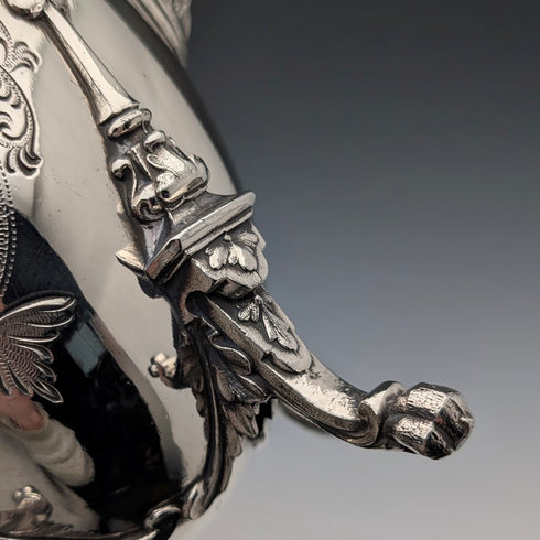 整把椅子裝飾精美,雕刻複雜,椅腳為以古董動物腿為主題的「敞篷車腿」。