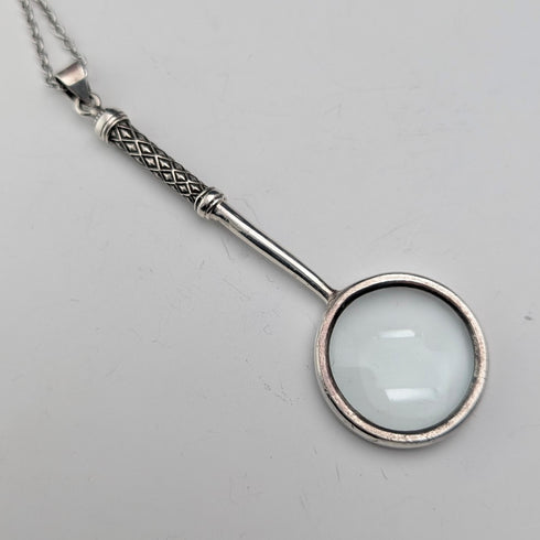 復古純銀小放大鏡吊墜帶項鍊鏈