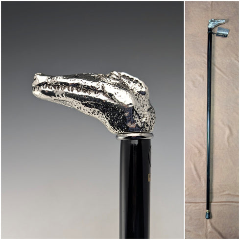 【新品】義大利製造純銀鱷魚頭柄軸手杖89cm