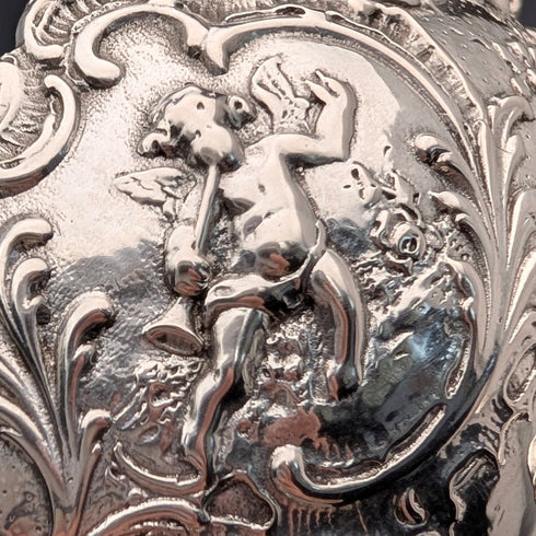 整個作品裝飾有可愛的天使和小花浮雕圖案。
