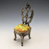 20 世紀 20 年代古董黃銅椅形懷錶架,帶黃色刺繡座椅