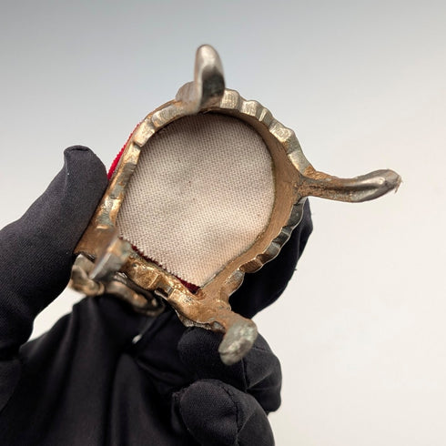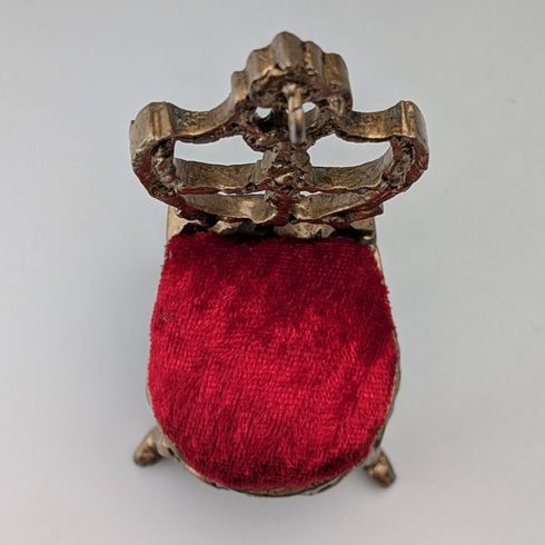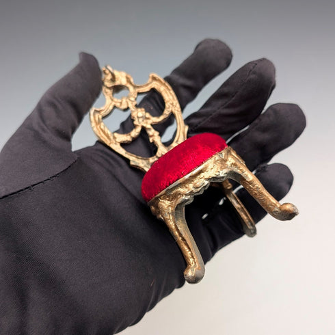 20 世紀 20 年代古董黃銅椅子懷錶架,配有紅色天鵝絨床單