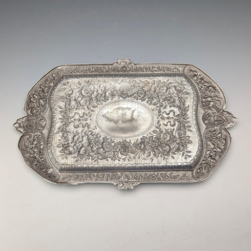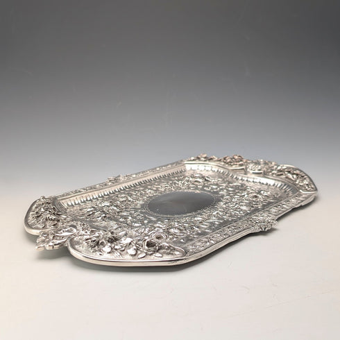 維多利亞中期英國古董銀盤浮雕方形梳妝台托盤
