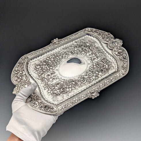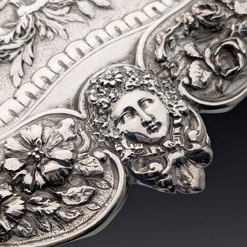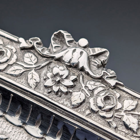 這是一個銀質的梳妝托盤,據信可以追溯到 19 世紀末(英國維多利亞時代中期)。