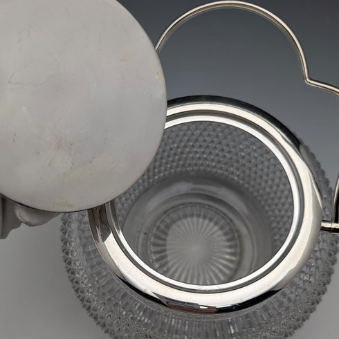 復古英國釘紋玻璃罐,附手柄和鍍銀蓋