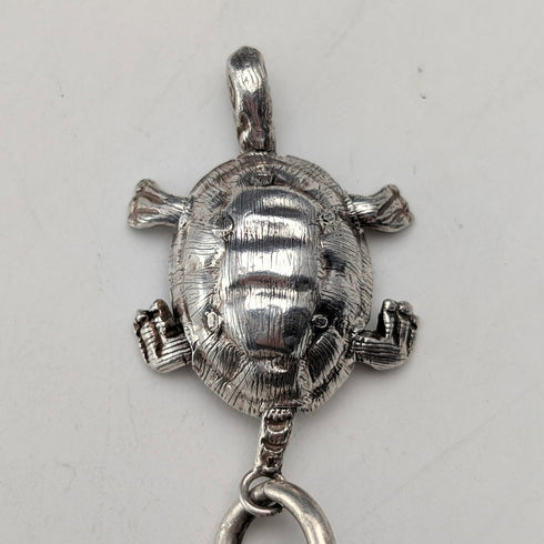 約 1900 年英國古董純銀超厚阿爾伯特鏈 71 克烏龜吊飾錶鍊