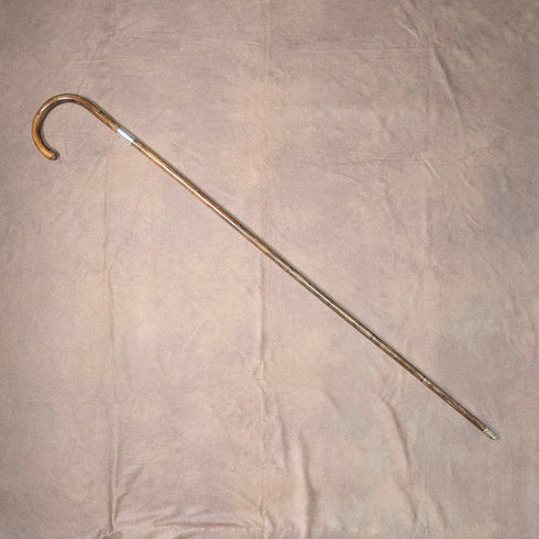 這是一根帶有純銀裝飾的彎曲手柄手杖,據信可以追溯到 1930 年左右