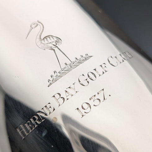 裝飾很簡單,但正面雕刻著一隻蒼鷺狀的鳥,並刻有“HERNE BAY GOLF CLUB 1937”字樣。