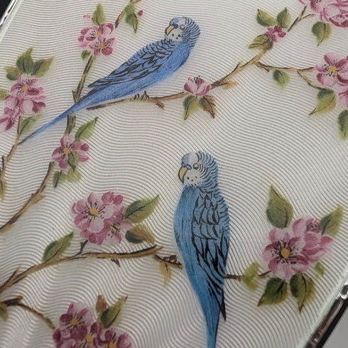 1947年英國古董純銀扭索琺瑯花鳥裝飾手鏡,由亨利·克利福德·戴維斯製作