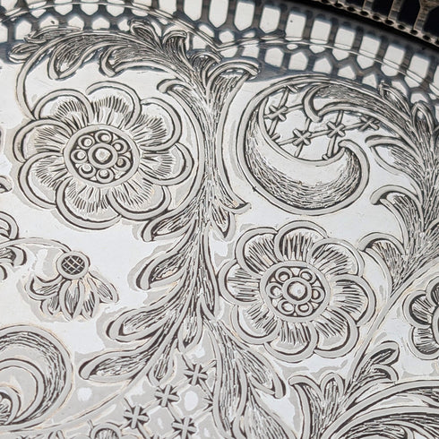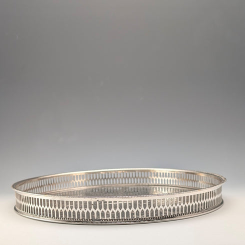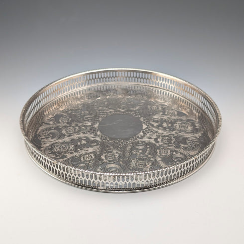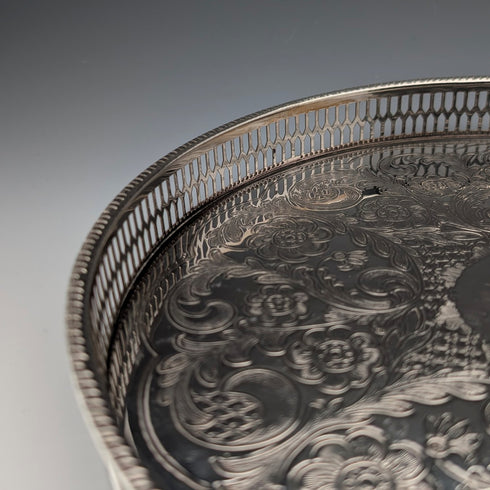 復古英國銀盤畫廊托盤,直徑 26 厘米,Viners