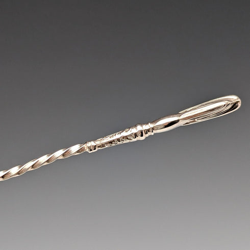劍柄尖端雕刻裝飾精美,劍柄呈扭曲狀設計。