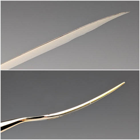 純銀的刀刃上雕刻著植物圖案,安裝部分也裝飾得非常精美。