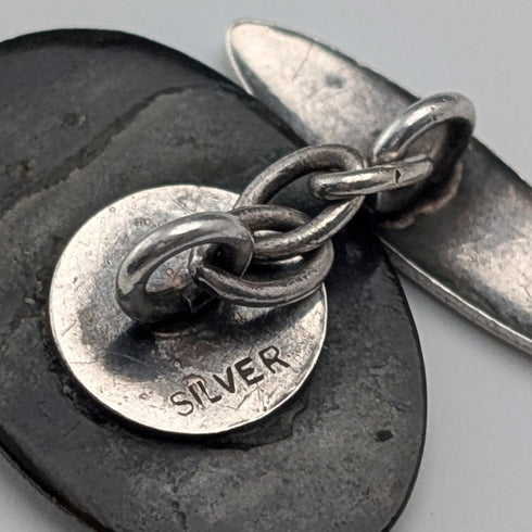 一對鑲嵌在純銀中的珍珠母貝袖扣。