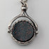 純銀底座上鑲有一顆深綠色的血石,略帶紅色,並配有紅玉髓旋轉錶鍊。