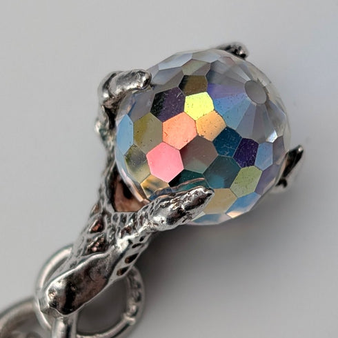 它採用“爪碗”錶鍊設計,鳥腿抓住閃閃發光的多面水晶。