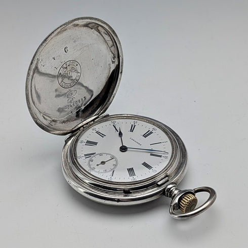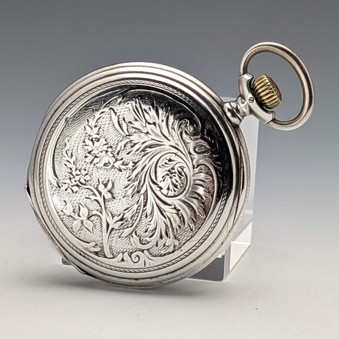 約 1910 年古董浪琴懷錶,新藝術風格裝飾,銀色側獵錶殼,運作良好