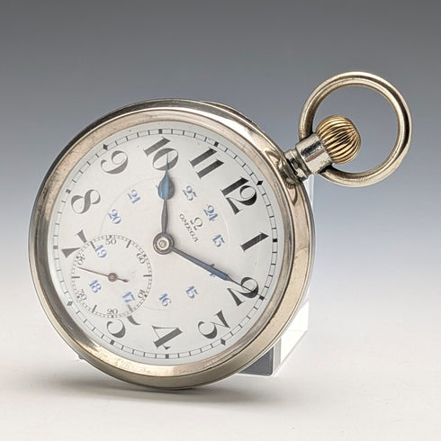古董歐米茄懷錶,約 1920 年產,直徑 53 毫米,鐵路錶,合金錶殼,運作良好