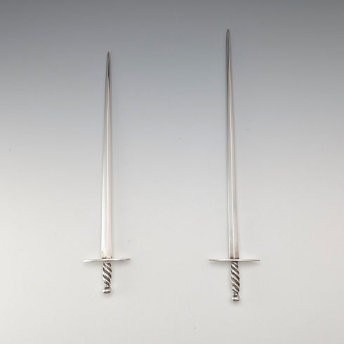威廉赫頓父子公司 (William Hutton & Sons) 製作的古董英國銀盤劍形肉串一對
