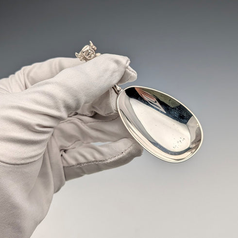 製造商和製造年份未知,但據信這件銀質茶葉罐勺可追溯至 20 世紀末或更晚。