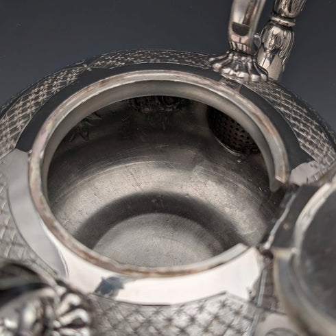 約 1900 年英國古董銀盤茶壺套裝,由 WW Harrison & Co. 製造。
