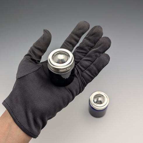 藍色的鈷玻璃本體配有純銀製的蓋子。