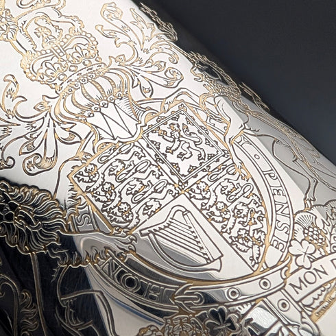 正面雕刻有英國紋章,側面刻有英國紋章院(College of Arms)的徽章。
