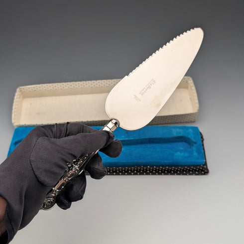 1972年 英國復古 純銀製手柄 蛋糕切片器 附盒 Harrison Brothers