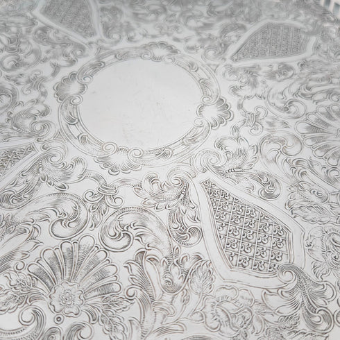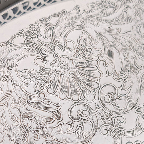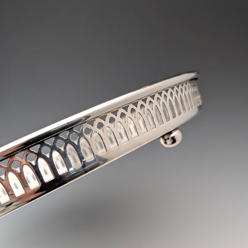 復古銀鍍層圓形小型畫廊托盤 直徑30cm Primrose E.P. Brass