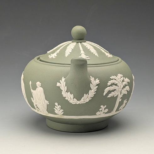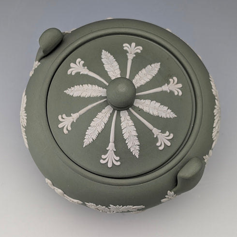英國復古 Wedgwood 綠色碧玉瓷蓋糖碗