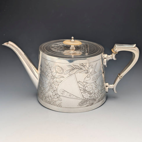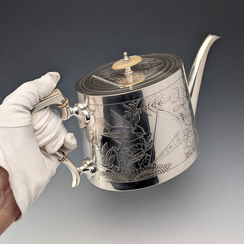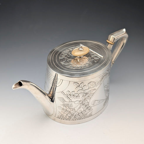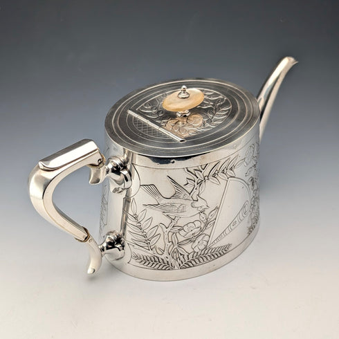 【預留中】19世紀後半 英國古董 銀器製作 日本風裝飾 茶壺 Johnson&Co