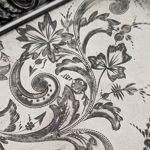 ブリタニアメタル(ピューター)に銀メッキされており、銀メッキは薄くなっている部分が多いですが、そこがアンティークらしさをより際立たせています。